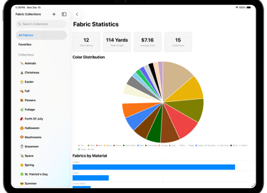 Collection Statistics: Instantly view how many fabrics and how many yards/meters are in each collection