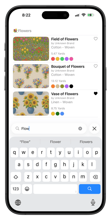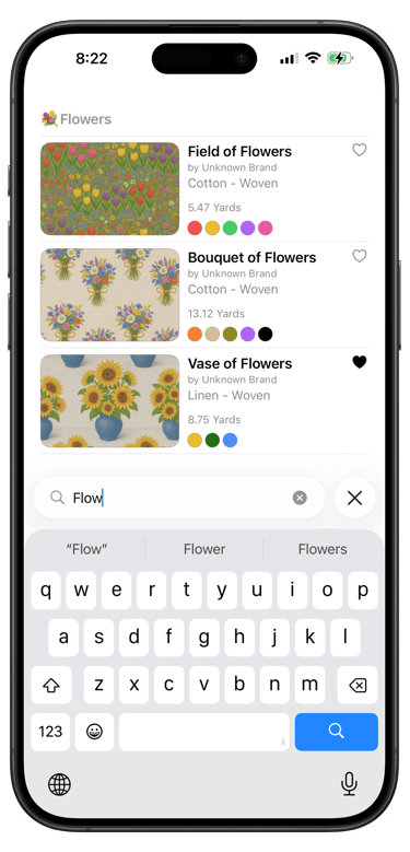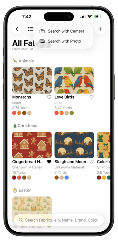 With smart search — including Visual Search, which lets you check whether you already own a fabric (or something similar) simply by snapping a photo — Fabricora makes it easy to avoid duplicates, stay inspired, and shop with confidence.